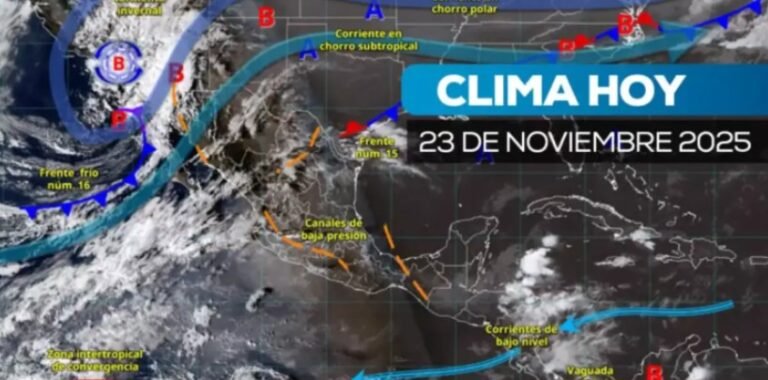 El Servicio Meteorológico Nacional informó que la primera tormenta invernal de la temporada 2025-2026, en combinación con el frente frío número 16, generará chubascos, lluvias de mayor intensidad, vientos y descenso de temperatura en regiones del noroeste y norte de México aunque…