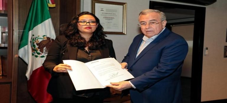 Rocha Moya le tomó la protesta de ley y enseguida le hizo entrega de su nombramiento a la nueva titular de esta Comisión