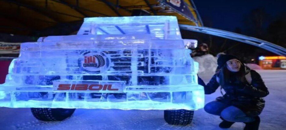 Un fanático de los autos de la ciudad rusa de Novosibirsk se asoció con un escultor de hielo local para crear un exclusivo SUV Mercedes Clase G con bloques de hielo montados en un chasis de metal y propulsado por un viejo motor.